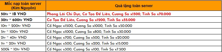 3.1. Nạp hoàn trả kim nguyên lên tới 50% cho server đặc biệt